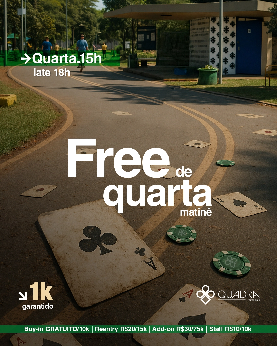Com certeza! A Quadra é um espaço aberto e acolhedor, inclusive para quem está começando. Temos torneios ideais para iniciantes, como os freerolls, além de uma comunidade disposta a ensinar e compartilhar conhecimento. Aqui ninguém nasce profissional — mas todo mundo evolui junto.